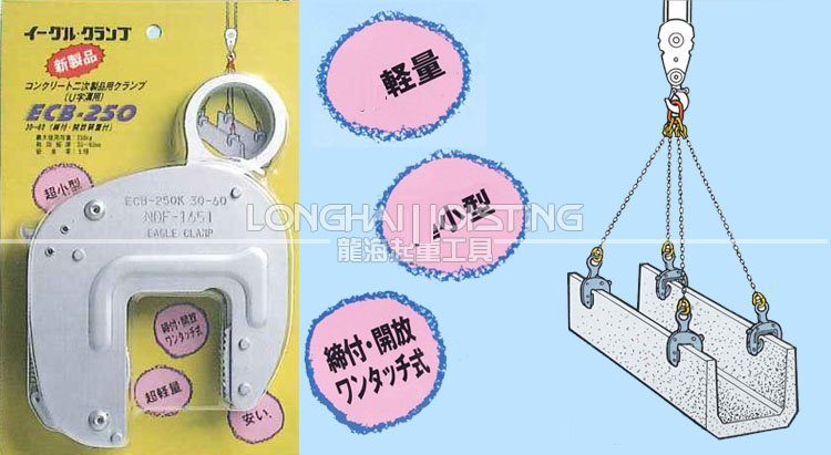 ? ECB型鷹牌混凝土夾具、混凝土制品夾鉗日本鷹牌EAGLE CLAMP品牌產(chǎn)品,煙臺開發(fā)區(qū)龍海起重工具有限公司銷售。